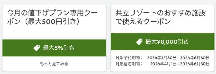 - 共立リゾート・クーポン ※6月30日(火)まで