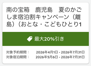 - 南の宝箱・鹿児島クーポン(離島) ※7月31日(金)まで