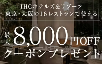 IHGホテルズ&リゾーツクーポンは、最大8,000円割引。