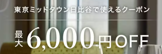 東京ミッドタウン日比谷クーポンは、最大6,000円割引。