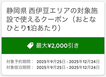 - 静岡県西伊豆エリアクーポン ※12月24日(水)まで