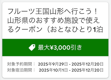 - 山形県のおすすめ施設で使えるクーポン ※12月20日(土)まで