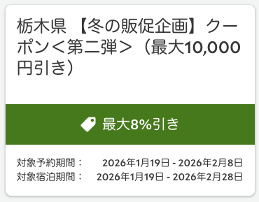 - 栃木県 【冬の販促企画】クーポン<第二弾> ※2月8日(日)まで