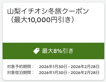 - 山梨イチオシ冬旅クーポン ※2月28日(土)まで