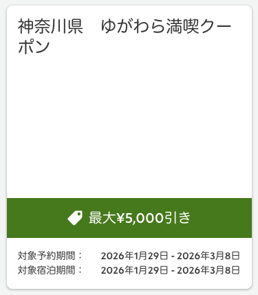 - 神奈川県 ゆがわら満喫クーポン ※3月8日(日)まで