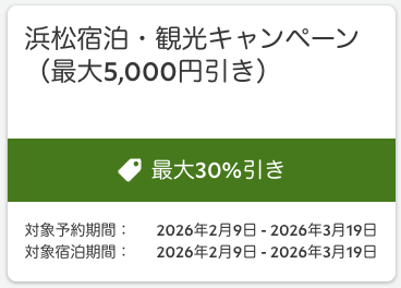 - 浜松宿泊・観光キャンペーンクーポン ※3月19日(木)まで